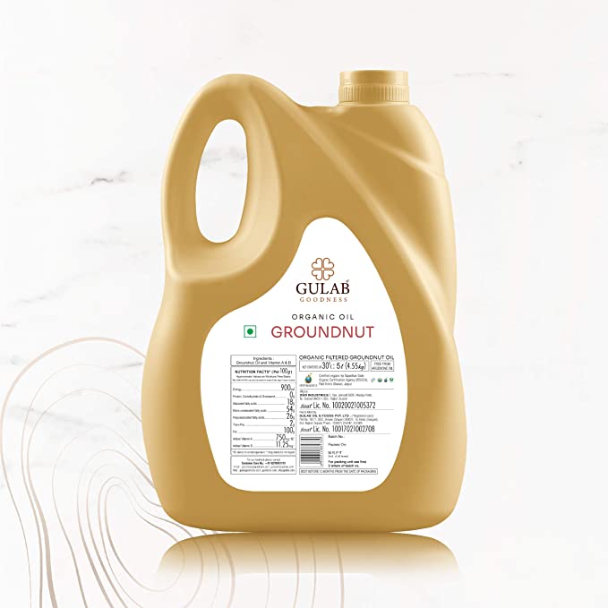 The Gulab Gold organic groundnut oil is certified 100% organic.