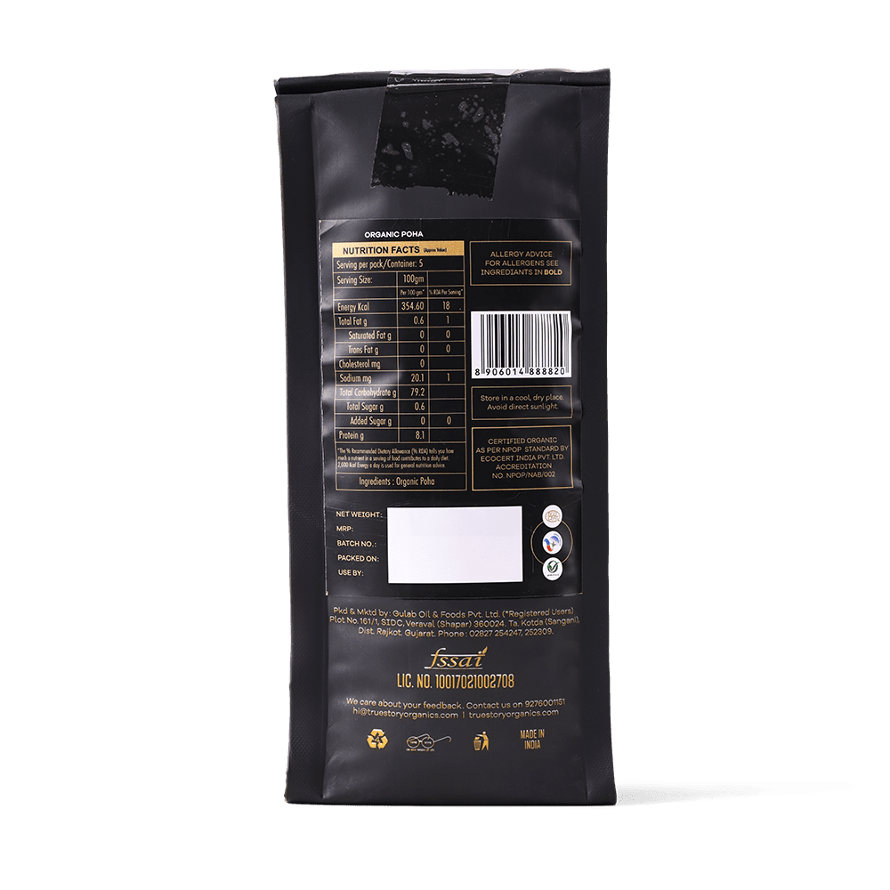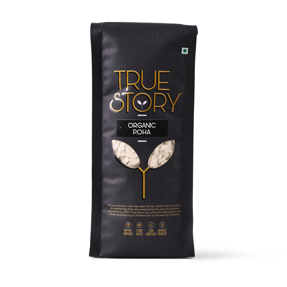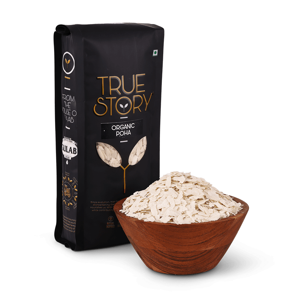 - True Story Organic Poha: Flattened rice flakes, perfect for a quick and nutritious breakfast or snack.
