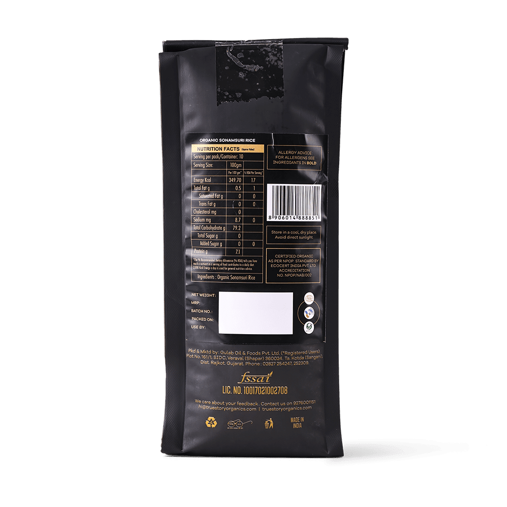 True Story Organic Rice is versatile and easy to cook. Use it to prepare a variety of dishes, from simple steamed rice to elaborate biryanis and pulaos. Follow the cooking instructions on the packet for best results.
